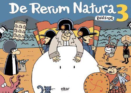 Samurtasuna eta zorroztasuna elkartzen daki Zaldi Eroak, jenialtasun ukitu batekin. Baina, horrez gain, aldakorrak dira bere marrazkiak eta pertsonaiak, gizartearen bilakaerarekin eta denboren martxarekin itxuraldatuz doazenak. De Rerum Natura 3 honetan, adibidez, 2007ko udatik 2009ko amaiera arteko komiki-tiren antologia bat aurkituko dugu, eta garai horretan esangura berezia izan duten gertakari eta protagonistak: hala nola Braveheart Ibarretxe, bere kontsultekin bai baina ez dabilela, Josu Jon Imaz, espainiarrak liluratzen txapelduna, edo Napoleon Lopez, ustekabean-edo agintea eskuratu eta Normalizatzaile nagusi bihurtu nahi duena.
