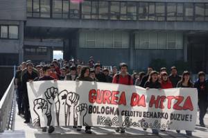 Hamahiru ikasle epaituko dituzte asteazkenean, Bolognaren aurka protesta egiteagatik 2013 Urtarrilak 21 Epaiketa iragan irailaren 26an zen egitekoa, baina, greba orokorra medio, atzeratu egin zen urtarrilaren 23ra. Lau hilabeteko espetxe zigorra eskatu dute ikasle bakoitzarentzat, 2008an, EHUren Leioako Campusean, Bolognaren aplikazioa onartzekoa zen klaustroa era baketsuan etetearren.