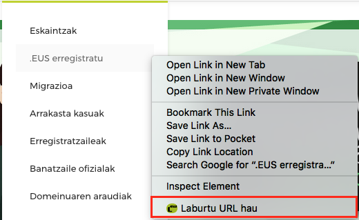 Horretaz gain, esteka bat saguaren eskuineko botoiaz sakatzen baduzu, aukera berri bat ikusiko duzu, helbidea laburtzeko aukera emango dizuna. Helbide barrako botoiarekin bezala, helbide hori zuzenean kopiatuko zaizu arbelean, Ctrl+v bidez nahi duzun tokian itsatsi ahal izateko.