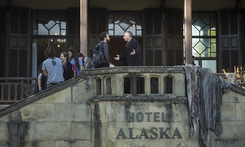 Alaska hoteleko barra gainean, kopak hutsik, norbaitek noiz beteko zain. Miramar jauregiko zati txiki bat nahikoa, Obabako hotela irudikatzeko. Hemen bizi da Teresa, soinu jotzailearen semeari, Davidi, aitaren iragan kolaborazionista ezagutaraziko diona. Hemen zabaltzen zaio mundu bat Davidi, Josebaren bitartez. Hirugarren filmaketa gaua dute gaur Miramarren, eta Josebak eta lagunek su emango diote Alaska honi.