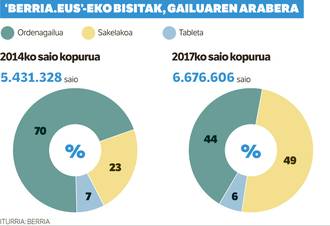 Egunkarien online bertsioak nagusitu egin dira, paperekoen kaltetan, baina, horrez gainera, erabiltzaileen ohitura aldaketek eragin zuzena izan dute hedabideen formatu eta edukietan. Gaur egun, sakelako telefonoa da albisteak irakurtzeko erabiltzen den pantaila nagusia. BERRIAren webgunearen kasuan, esate baterako, bisiten erdiak (%49) sakelako telefonotik egiten dituzte gaur egun. Duela lau urte, berriz, %23 ziren, eta 2011n, %3.