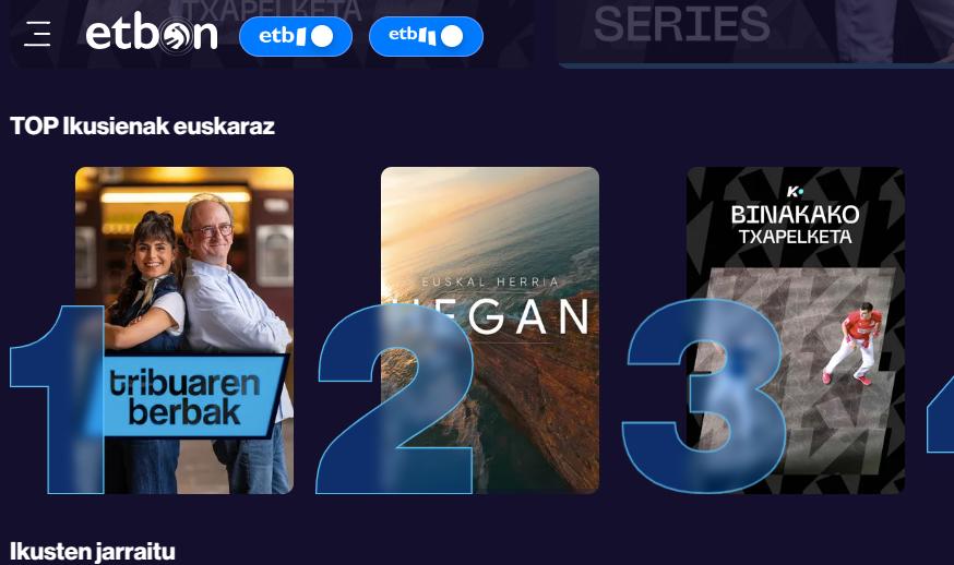 EITBren bosgarren plataforma aurkezpena da hau, Primeran, Makusi, Guau eta Orain sortu ondoren. Aurrekoek ez bezala, honek behintzat EITB / ETB izenarekin lotura bat badu. Domeinu propioa du ETB On-ek ere, besteek bezala: etbon.eus