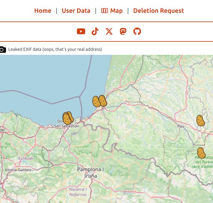 Hainbeste erabiltzaile ere ez zeuden WhiteDate.net horretan, 8.000 munduan, eta Euskal Herrian gizonezko 6 profil zeuden. Maparen bidez aurki daitezke horiek, besteak bezala. Eta erabiltzaile askoren kasuan, kargatu zituzten selfiak ere geokokatuta zeudenez, kasu batzuetan pertsona horien bizilekuak ere egin dira publiko. Euskal Herriko profilen kasuan, etxeko helbiderik ez, baina pertsonaren bat identifikatzeko modukoa egon badago.