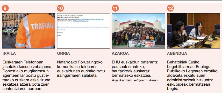Justizia sisteman Ipar Euskal Herrian 2025ean izan diren gertakariek hizkuntza eskubideen ukazioa eta defentsa eraginkorrerako eskubidearen urratzea azpimarratu zuten. Espainiako Estatuko administrazioaren pean dagoen justizia sistemaren funtzionamenduak ere gaztelaniaz izaten jarraitzen du, herritarren hizkuntza hautua zein kalitatezko justizia izateko eskubidea uneoro baldintzatuz. Baina, Eusko Jaurlaritzak eskuratutako justiziako eskumenetan ere, hizkuntza eskubide urraketa nabarmenak egiten jarraitzen da eta jardun gehiena gaztelaniaz egiten da. Euskaraz jarduteko proba pilotuak eta euskara planean ezarritakoak ez dira nahikoak EAEko justizia euskalduntzeko.