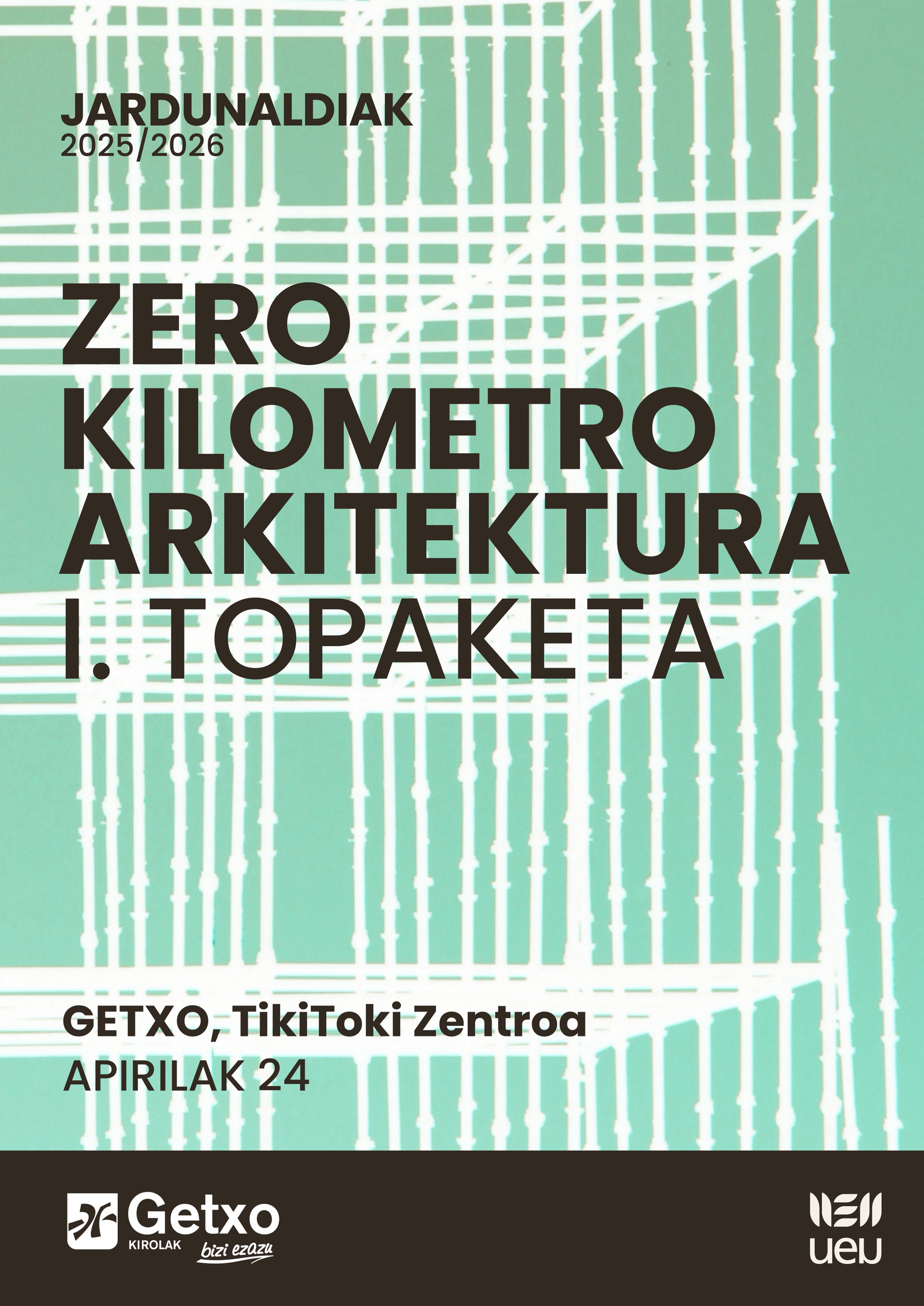 Zero Kilometroko Arkitekturaren I. Topaketa antolatu du UEUk datorren apirilaren 24rako, Getxoko Udalaren laguntzarekin. Zero kilometrokoa... eta euskaraz, noski.