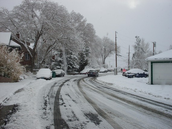 Gure kalea,College drive, elurretan. Ezkerretan, gure etxea.
