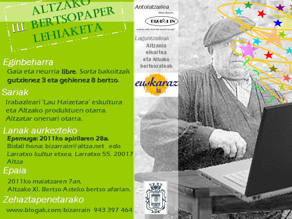 Altzako III. BERTSOPAPER LEHIAKETA