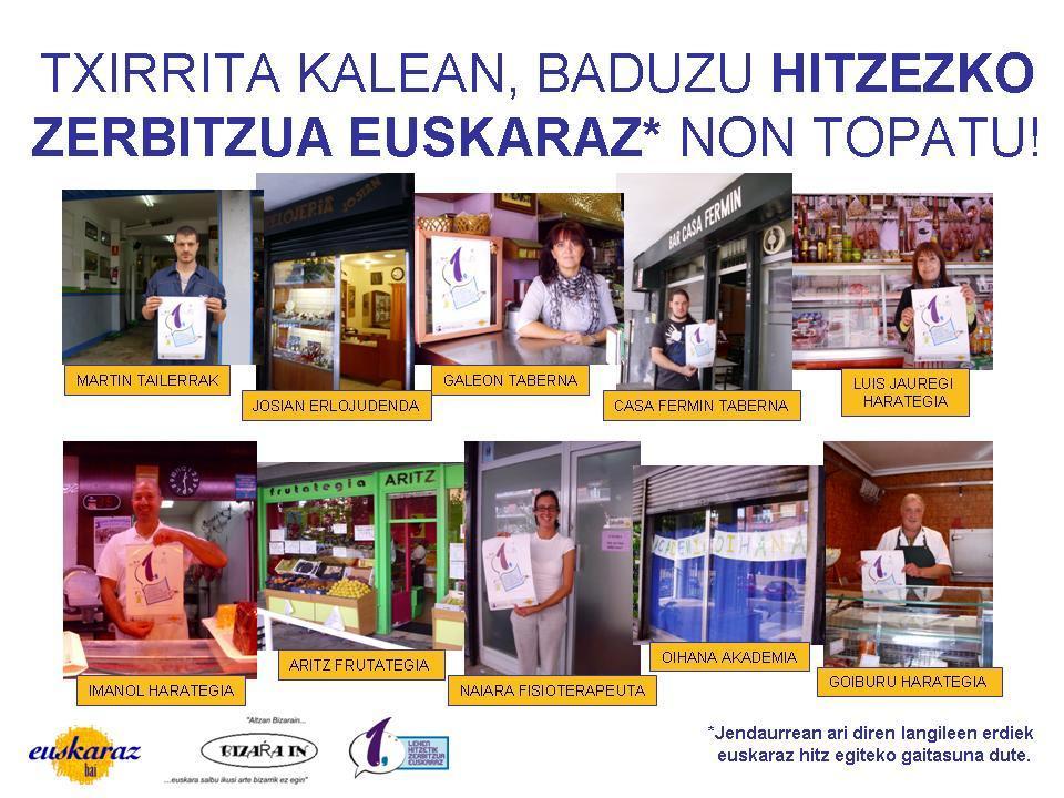 Gasteizko merkataritzan eta ostalaritzan euskaraz dakiten langileentzako pinak