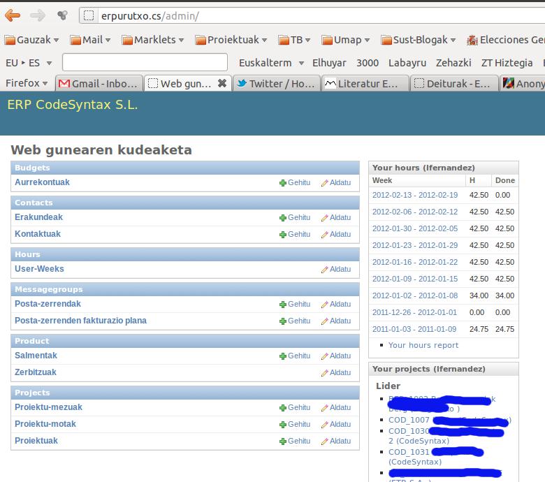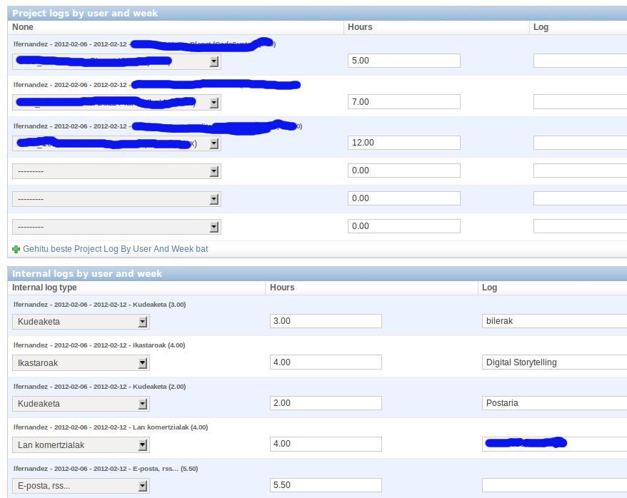 ERPurutxo, asteko orduak