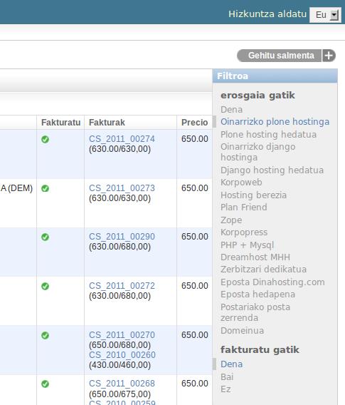 ERPurutxo, fakturen kudeaketa