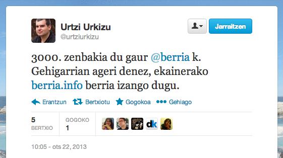 Egunkariaren itxierak hamar urte, artikulu sortan lehena Berrian