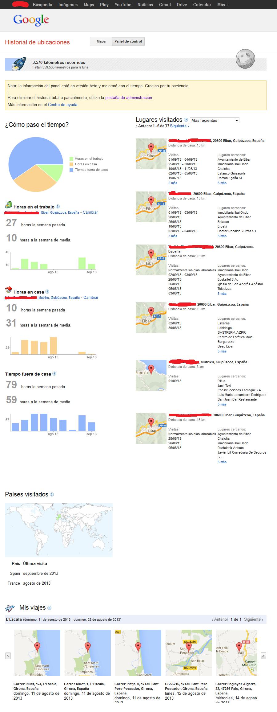 Google Location History: non ibili zaren noiz, estatistikak eta mapak