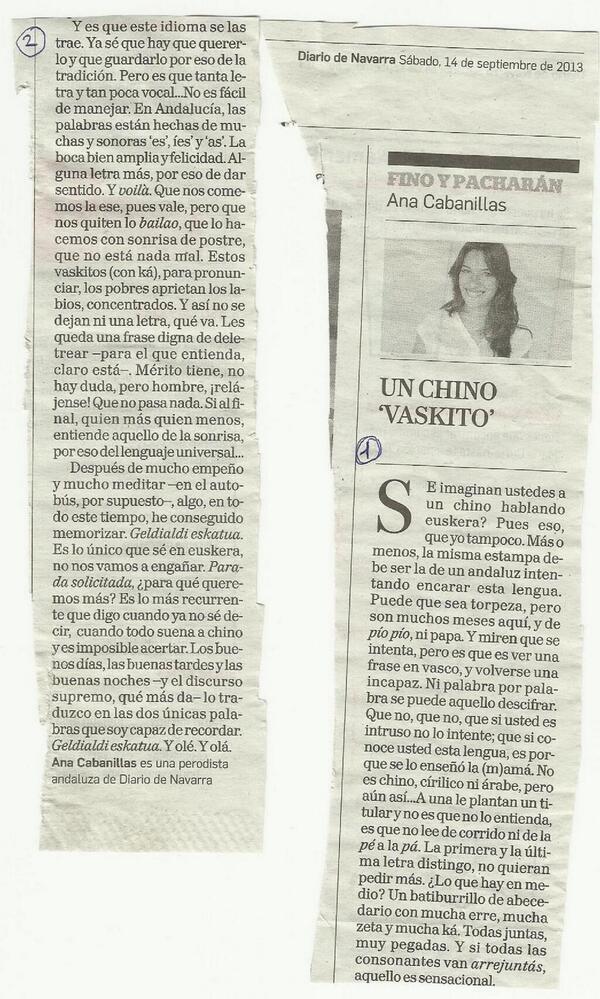 'Un Chino Vaskito', Ana Cabanillasen zutabea
