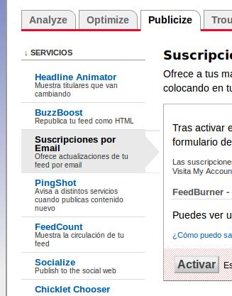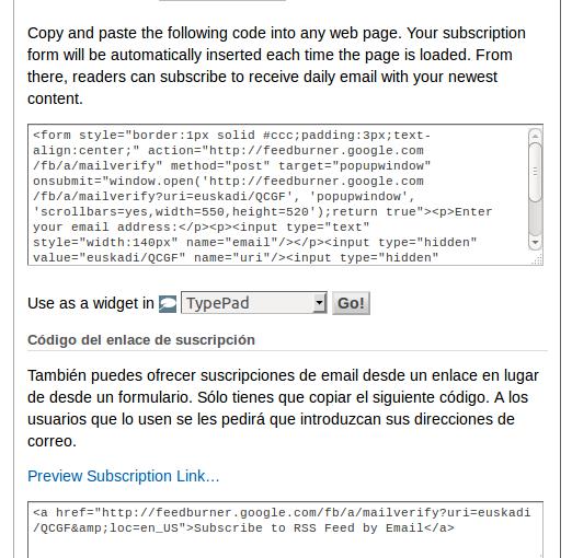 Feedburner 4 boletinera harpidetzeko kodea