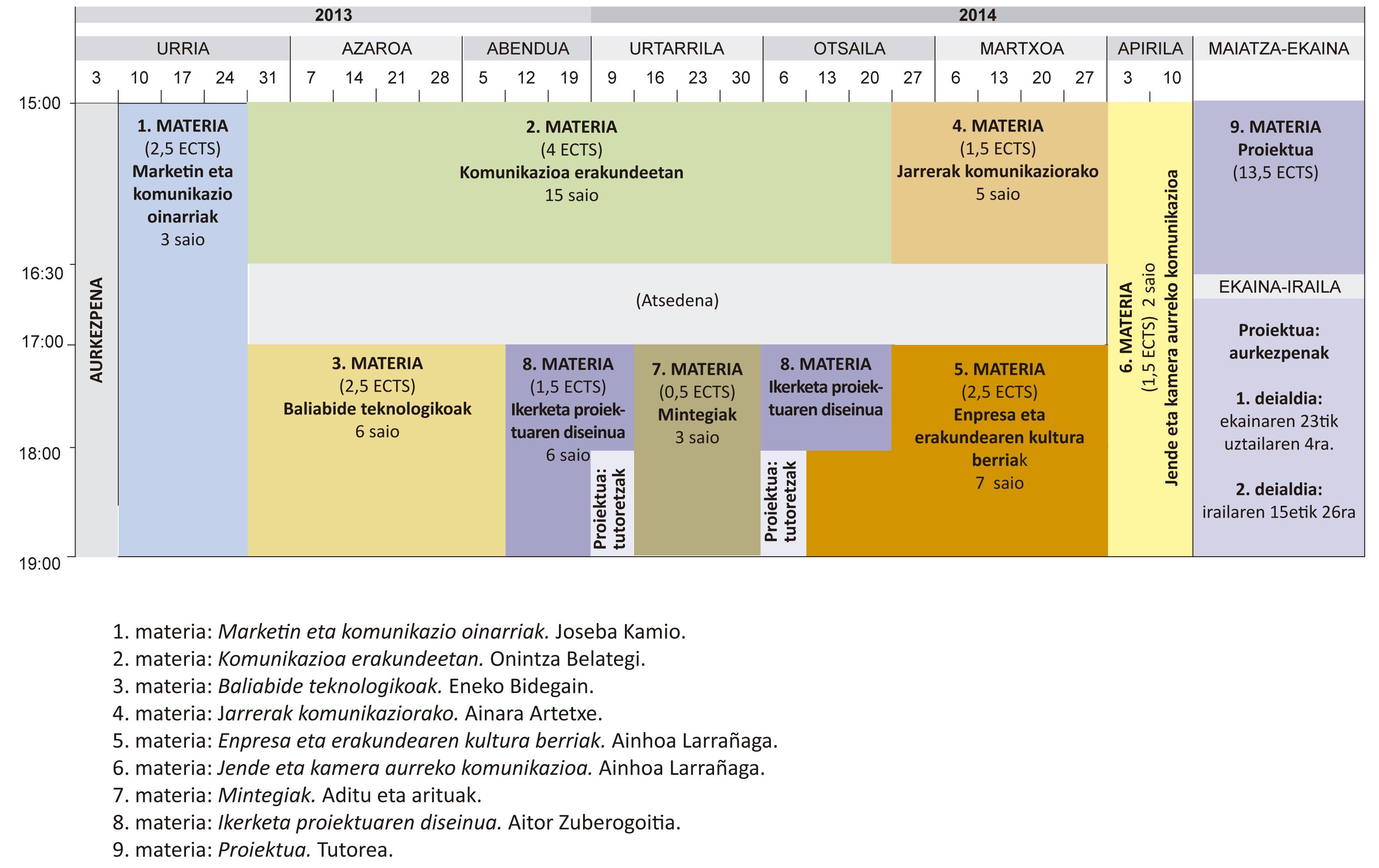 Aditukom 2013-2014, egutegia