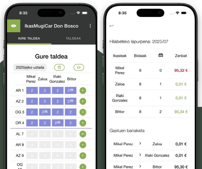 Aplikazioak gastu partekatuak kalkulatzeko modu estandar eta objetibo bat ere badu bere funtzionalitateen artean. Gorabehera deserosoak eta kalkulu konplikatuak aurrezten dizkie horrek bidaiariei.
