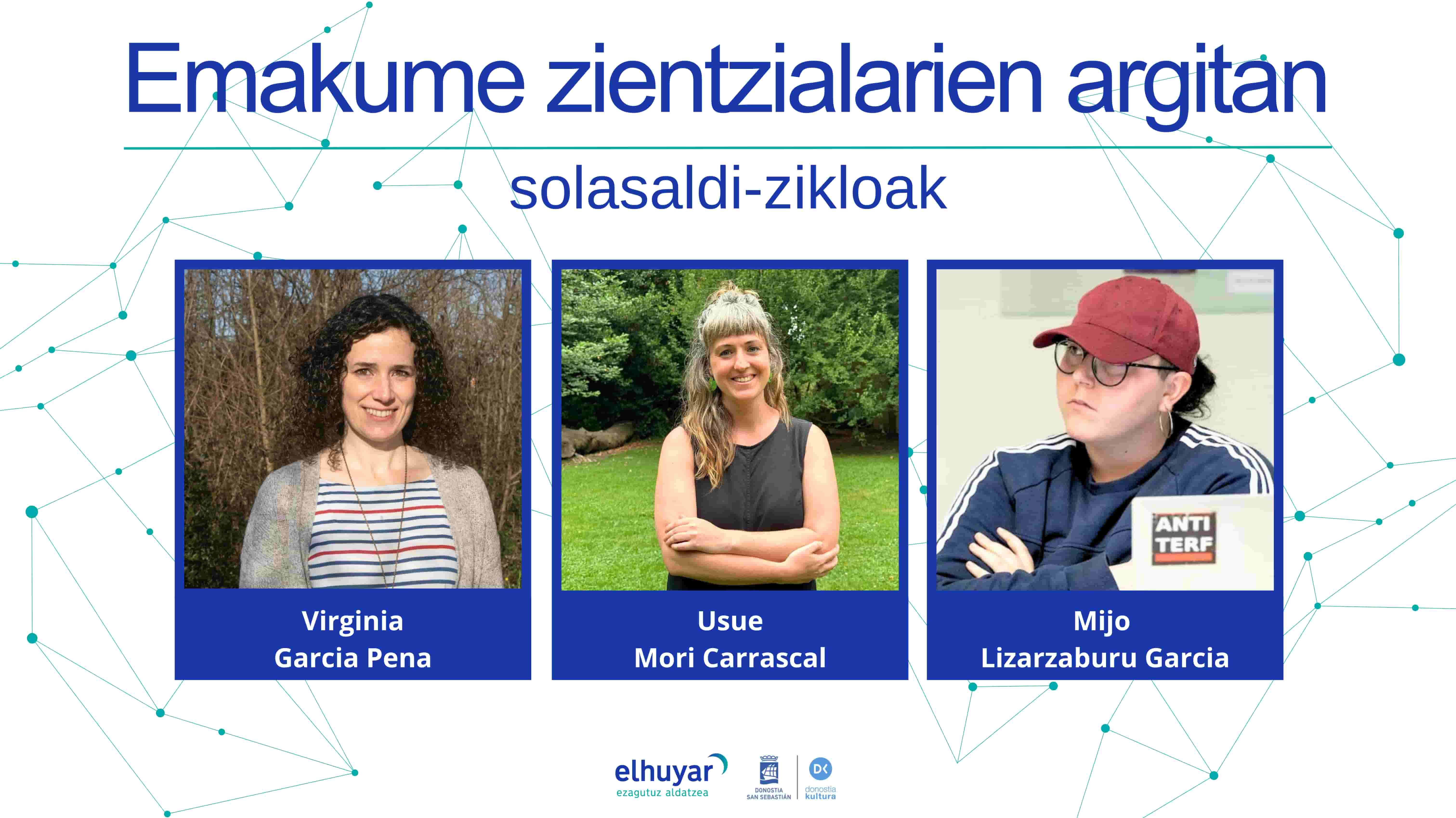 Aurrez aurreko elkarrizketen bidez, zenbait arlotan lan egiten duten hiru emakume zientzialari ezagutzeko aukera izango dugu Ana Galarraga Aiestaran Elhuyarreko zientzia-komunikatzailearen eskutik: Virginia Garcia Pena, Usue Mori Carrascal eta Mijo Lizarzaburu Garcia.